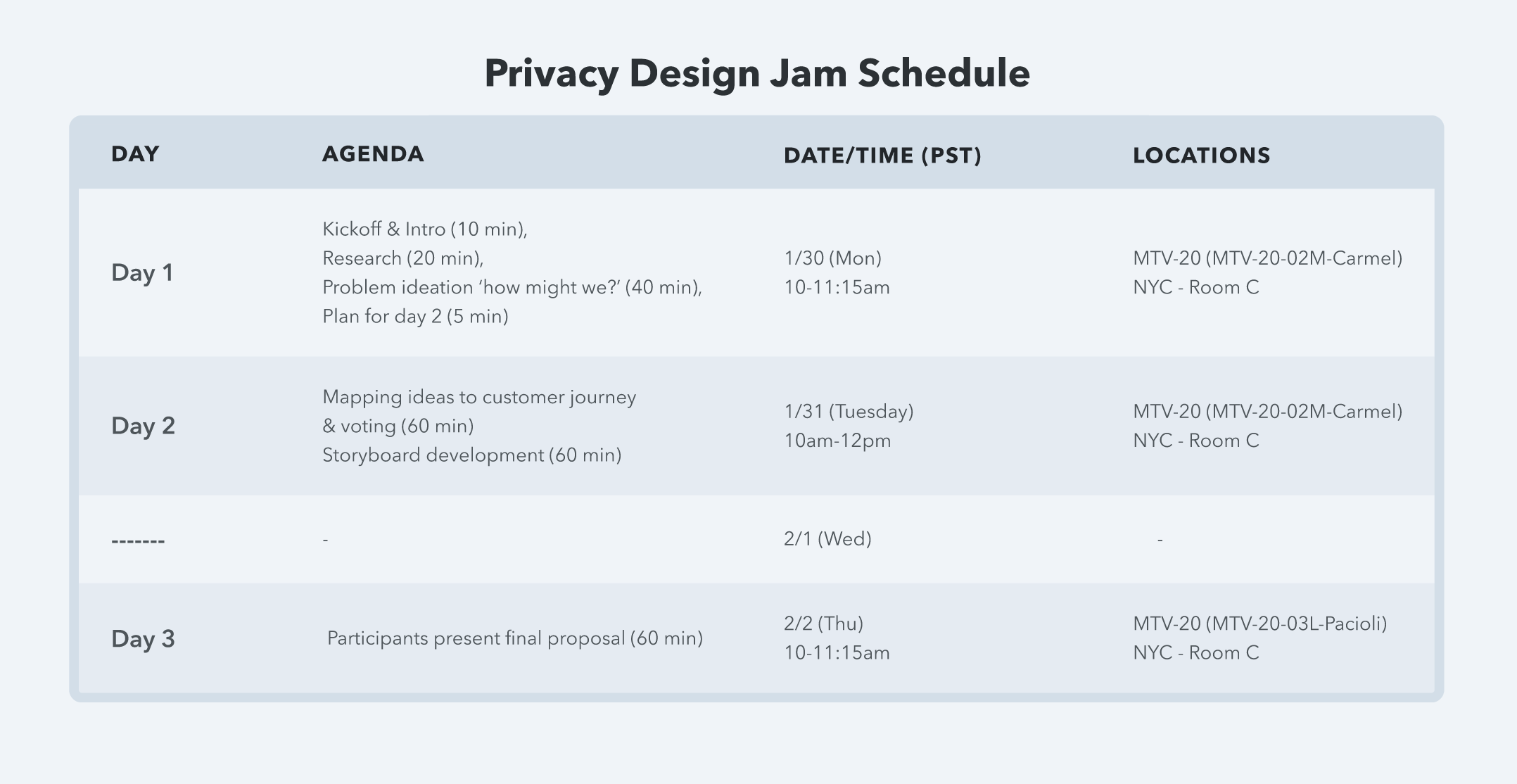 Privacy Design Jam Objectives: